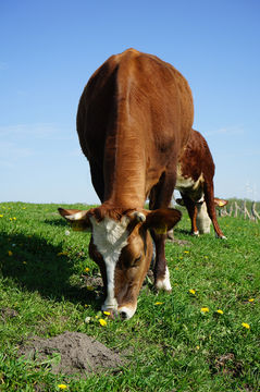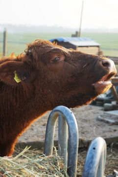 Ochsenschnuten gehen immer! Diese hier gehört zu Hajo. Er ist 5 Jahre alt und kam mit 2 Wochen zu uns und war bis zum 3. Monat 'Flaschenkalb'. Danach gab es bis zum 6. Monat Aufzuchtsmilch aus dem Eimer. Mittlerweile ist Hajo ein stattlicher Ochse, dessen Stockmass alle anderen überragt. Wenn er nicht mit Hugo, unserem zweiten Platzhirsch, um die Gunst der Mädels konkurriert, ist er gerne für Schmuseeinheiten zu haben.